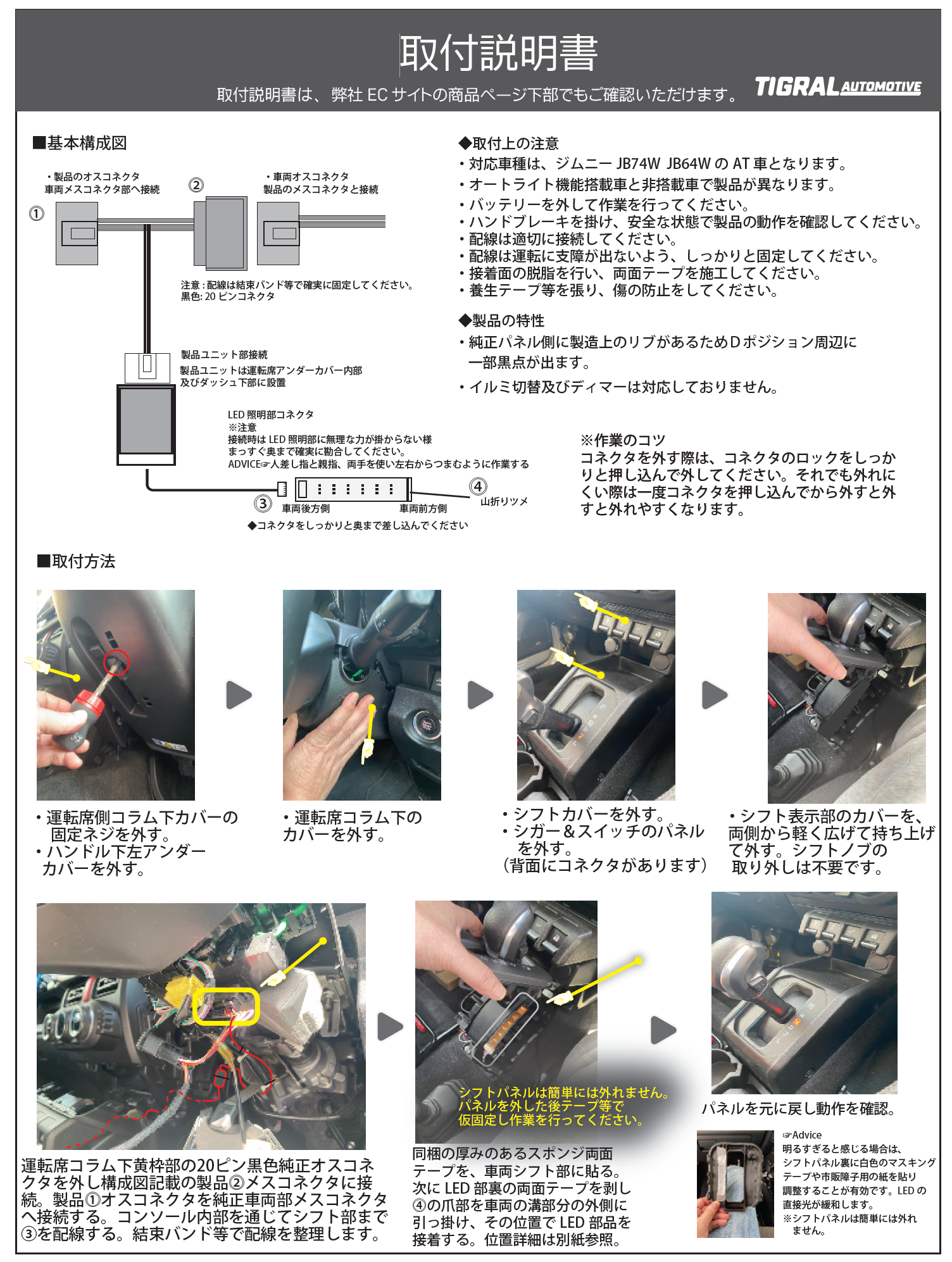 本製品は JB64W/JB74W AT車(1型~4型)専用設計 です。